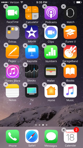 On the phone pressing the icon just brings up menus of things to do no jiggle and small x in. Touch and hold any app on the screen then tap Edit Home Screen. This method is also very easy to delete the iconsyou dont need just follow the steps as below.